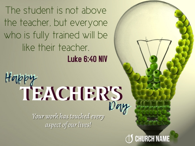 Happy Teachers Day Bible Verses Teacher’s Day Scripture Template | PosterMyWall: Here is a New Year’s resolution suggestion: Take what Jesus said in (Matthew 22:34-40) and add God’s commandments given to Moses in Exodus. Then, if you vow to abide by all these commandments, chances . On the occasion of Teachers Day, here are our top tips for all teachers to keep going and remain strong, healthy and happy. 1. Care for your voice Your voice is your most important asset. .